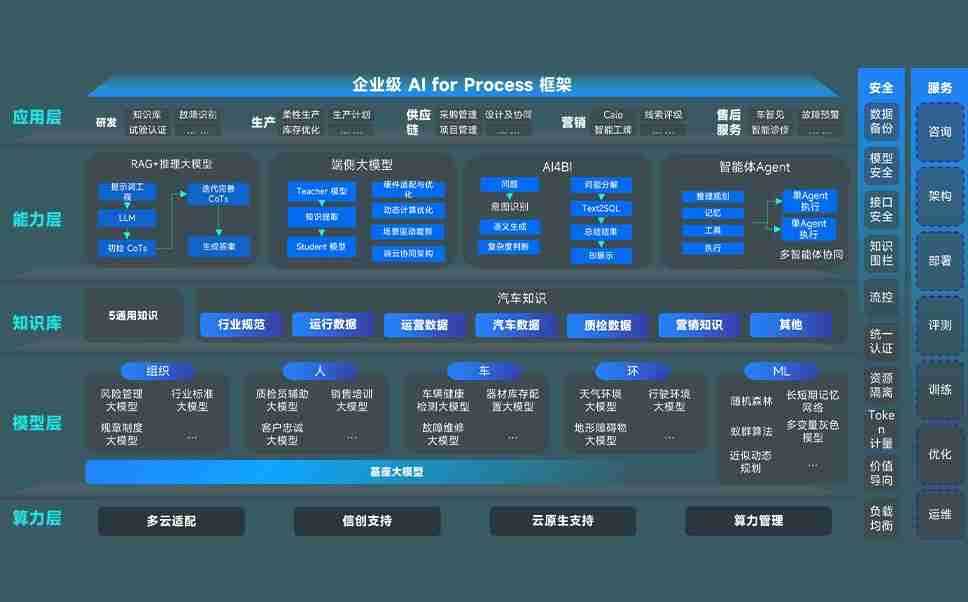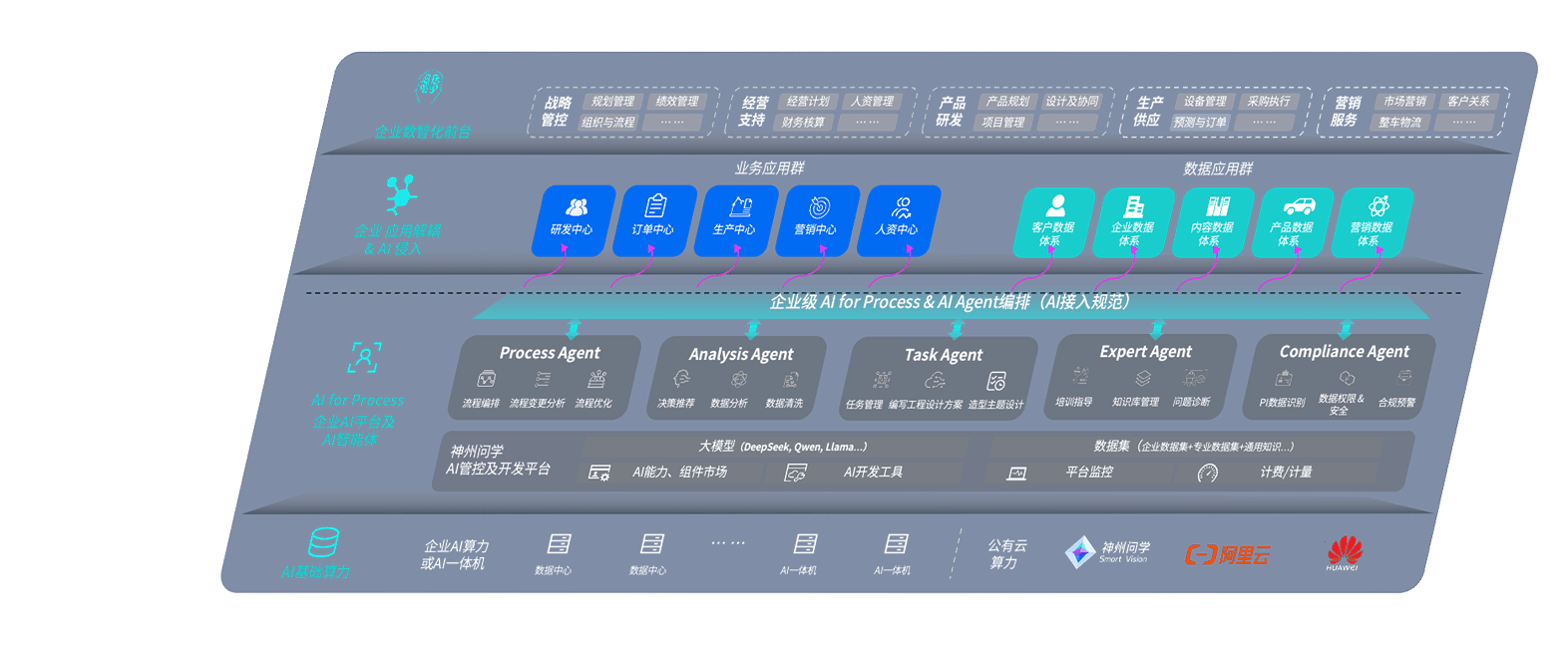 z6尊龙旗舰厅问学智车解决方案是一套基于AI技术的汽车行业智能化系统,,覆盖从底层算力到顶层AI应用的全栈方案。。方案由算力层、、、、模型层和应用层组成:算力层,,方案支持多种一体机配置,,,,具备云端灵活部署、、、多云适配以及动态优化计算资源的能力;模型层,,,,z6尊龙旗舰厅问学平台版提供了企业级AI应用一站式构建与管理平台,,,支持基于后训练强化技术的汽车企业专属模型的训练、、、评测和运营;应用层,,,z6尊龙旗舰厅问学DeepSeek版提供包括超级员工、、智能招采、、、、智能营销、、、、智能客服、、、AI for BI等一系列解决方案,,可助力汽车行业实现数字化转型,,让管理更智能、、、、响应更敏捷。。
