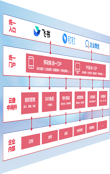 对协作平台提供支持服务,,,支持企业应用与协作平台对接,,包含组织同步、、消息集成、、、待办集成等。。。支持目前主流的协作平台:钉钉、、、企微和飞书。。